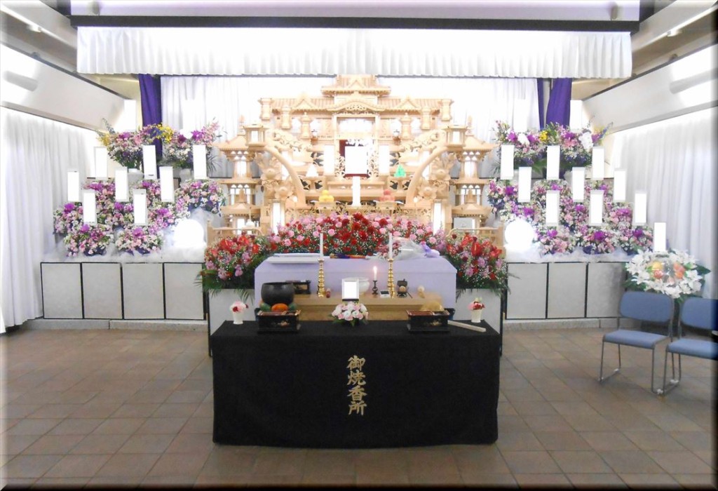 浦和斎場にて告別式 さいたま市北区大成町のお客様葬儀実績掲載しました。|さいたま市 大宮 家族葬 火葬場 斎場 葬儀屋 葬式 祭壇 供花 生花 供物 アレンジ花 札 看板 焼香 位牌 遺影 写真 浄土真宗 大谷派 仏教 仏式 住職 僧侶 お坊さん 木魚 木証