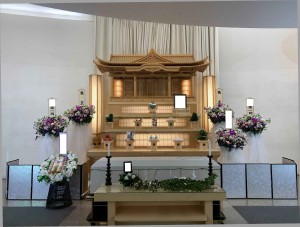 思い出の里会館にて神葬祭(一日葬) さいたま市大宮区天沼町のお客様葬儀実績掲載しました。|家族葬 火葬場 斎場 葬儀屋 葬式 祭壇 供花 生花 供物 榊 アレンジ花 札 看板 玉串 霊璽 遺影 写真 神式 宮司 神主