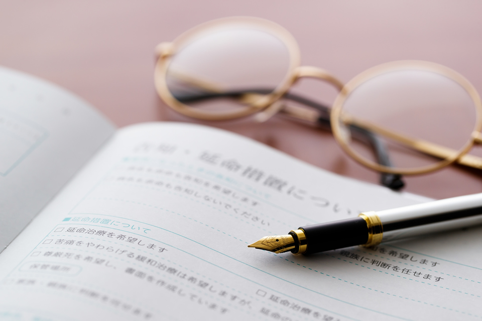 エンディングノートには決まった形式や書き方のルールはありません。書店や自治体、当社で配布している冊子、またはパソコン・スマホで入力できる形式など、自由に選べます。 以下は、記載しておくと役立つ代表的な項目です。 1. 基本情報 家族が手続き等で迷うことなく動けるよう、必要な情報を整理しておくことが大切です。 2. 医療・介護についての希望 ・入院/施設サービス利用時の希望(施設名/連絡先) ・主治医/かかりつけ医/家族に伝えてほしいこと などを記しておくことで、意思表示を明確にできます。 急な状況で「どうするべきか分からない」という状態になることを防げます。 3. 葬儀についての希望 ・宗派、会場、喪主希望者、参列者の範囲 ・遺影に使ってほしい写真、流してほしい音楽、読み上げてほしい言葉など こうした希望を具体的に書き残しておくことで、残された方が準備しやすくなります。 4. お墓・供養に関する希望 ・まだ決まっていない場合:希望する形(永代供養・納骨堂・樹木葬・海洋散骨など) 「子どもに負担をかけたくない」「自然の中で」などの思いも書けます。 5. 財産・相続に関する整理 エンディングノート自体は法的効力を持ちませんが、後から作成する「遺言書」の下書きにもなります。 特に、何がどこにあるかを明記するだけで、相続手続きが格段にスムーズになります。 6. 大切な人へのメッセージ 「ありがとう」「これからも笑顔でいてほしい」という一言が、残された方にとって何よりの支えになります。 |